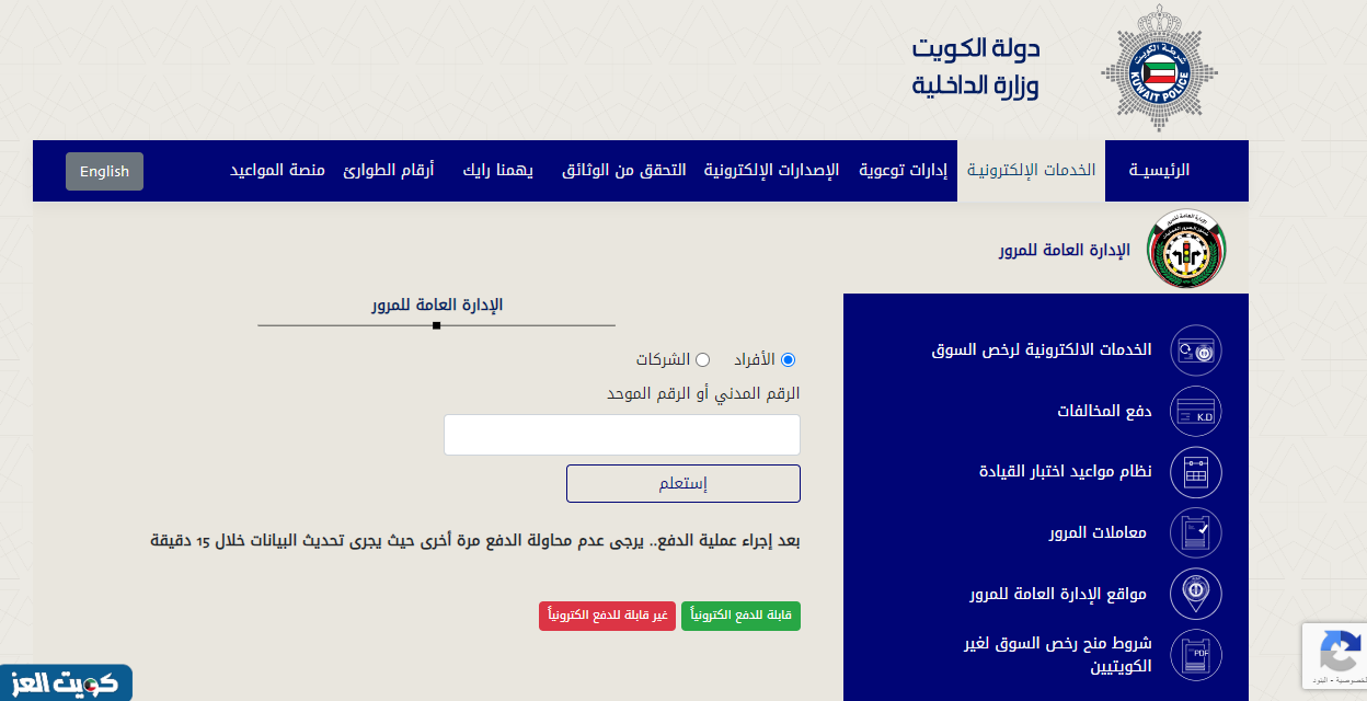 - ^ kuwaitplatform.com , الاستعلام عن نقاط المخالفات المرورية , 22/07/2024
